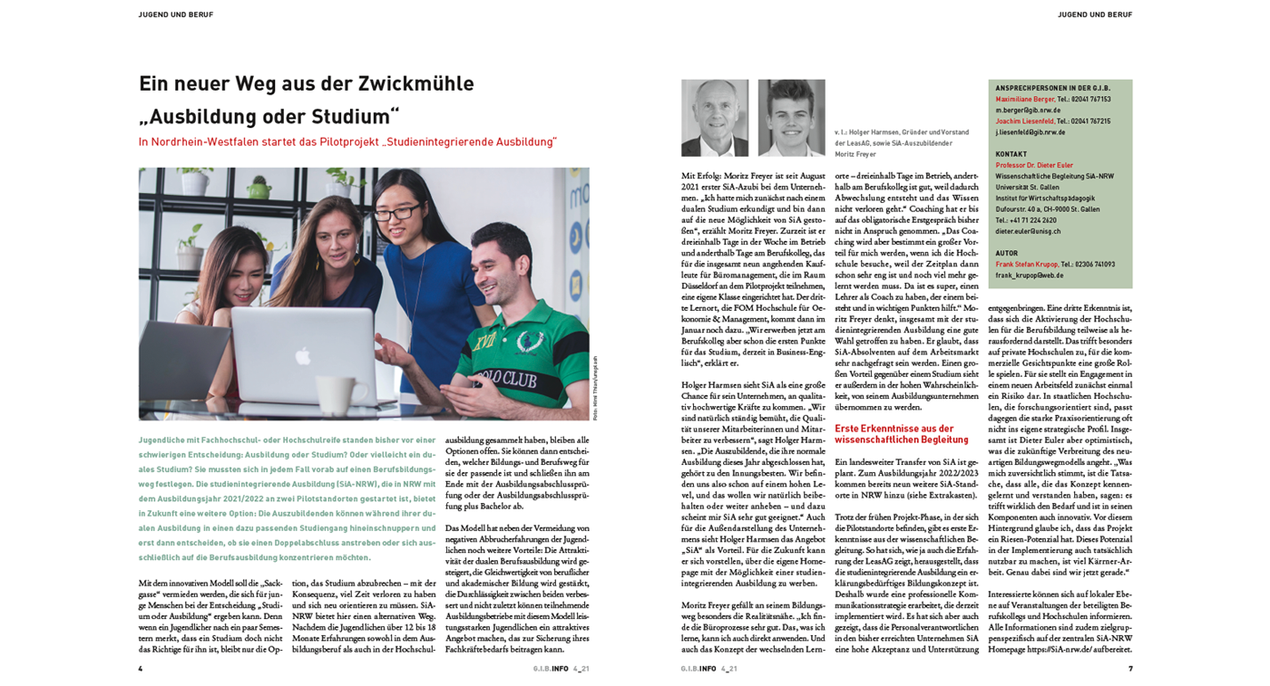 Info zur SiA NRW mit Interview von Vorstand Holger Harmsen und Moritz Freyer, dem ersten SiA-Auszubildenden bei der LeasAG Download PDF