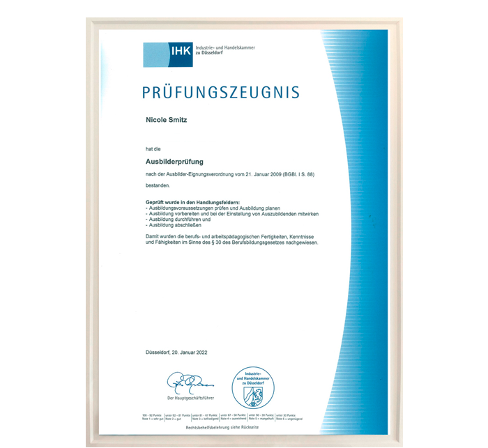 2021 AUSZEICHNUNG VON DER IHK:HERAUSRAGENDE BERUFSAUSBILDUNG